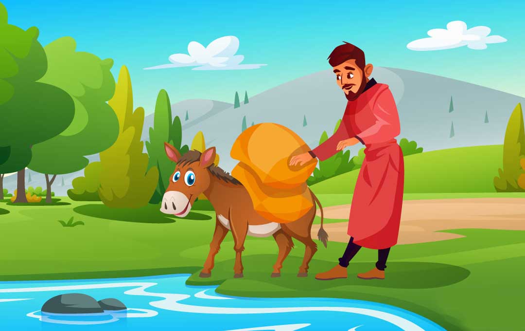 “neither ông hay con trai cũng không nên cưỡi nó. Nó trông có vẻ rất mệt. Ông nên ôm con lừa đi”, người nông dân suggested.